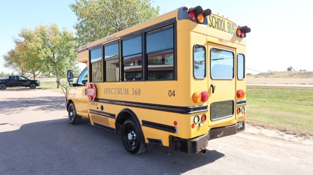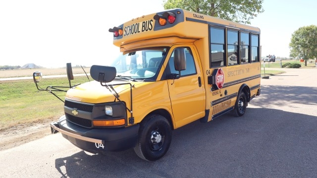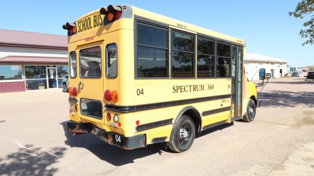 Drive Home. AirBags Ok. Radiator Still Full. AC Still Charged. Windshield Ok. Extremely Hard to Find Express Cutaway School Bus with Vinyl Seat, 17 Passenger, Power Swing Out Exit Doors, Rear Trans/Air Heating and Air Conditioning, K-Series Public Use Wheelchair and Standee Lift and 16" Wheels. Like New Tires. Super Clean! Low, Low Miles! Nice Fix! Sharp! Great For School, Daycare or Many Other Uses!!!